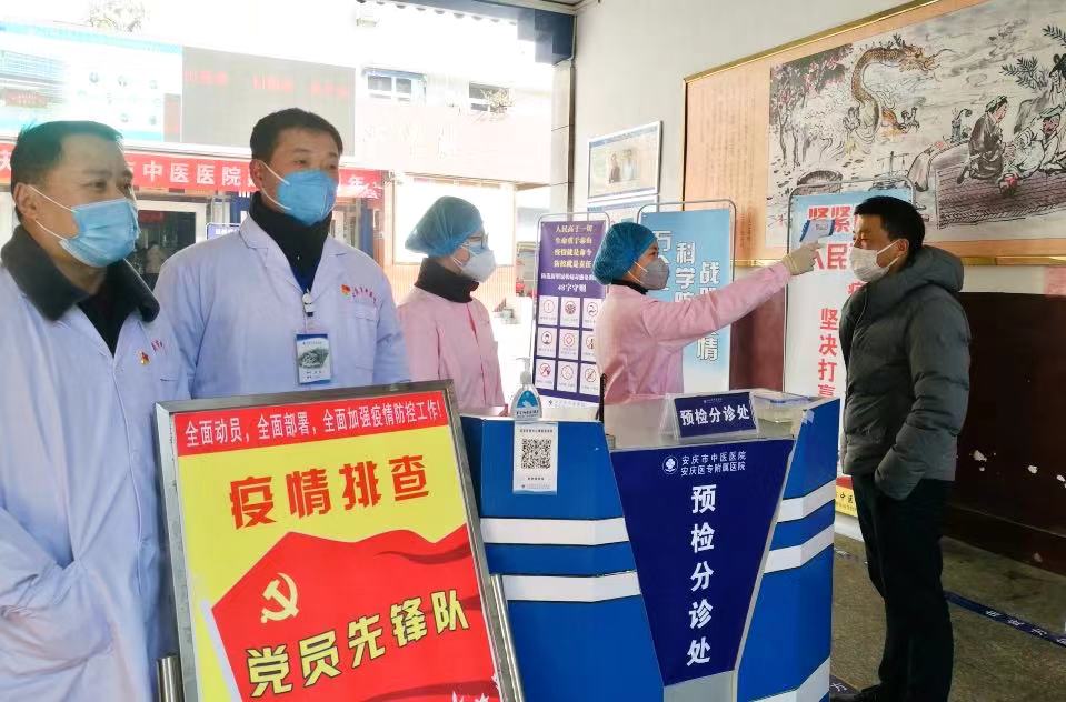 疫情就是命令,防控就是责任!在新型冠状病毒感染的肺炎疫情形势依然严峻,仍处于防控关键阶段的时期,直属附院(安庆市中医医院)院党委坚决贯彻落实习近平总书记对新型冠状病毒感染的肺炎疫情的重要指示精神,把做好疫情防控工作作为“不忘初心,牢记使命”主题教育成果的一次实践。医院第一时间成立“疫情防控排查党员先锋队”,向医院全体党员发出了倡议书,号召全体党员提高政治站位,做疫情防控的排头兵、专业人和宣传员。党旗在前,党员向前!直属附院各党支部充分发挥基层党组织战斗堡垒作用,紧紧凝聚起党员同志的思想和行动;广大党员充分展现共产党员的先锋模范作用,纷纷带头贯彻和宣传党中央的各项决策部署,踊跃申请挑起一线防控重担。党员医务人员主动请缨到一线防控战斗岗位值守,牢记医者初心,不忘救死扶伤的天职,行政岗位的党员同志做好后勤保障和支援配合。在院内导诊台、预检分诊处、发热门诊室等各个关键岗位上,在一批批急需物资的紧急运送和调配的过程中,都能看见医院共产党员紧张忙碌的身影。一个支部就是一座堡垒,一名党员,就是一面旗帜。艰难关头显党员本色,一线岗位有党旗飘扬!