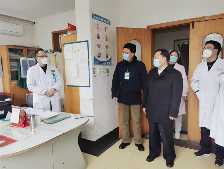 2月27日上午,校党委书记杨金奎现场督查直属附院的疫情防控和医疗工作,附院党委书记汤洪带领医院相关人员陪同。