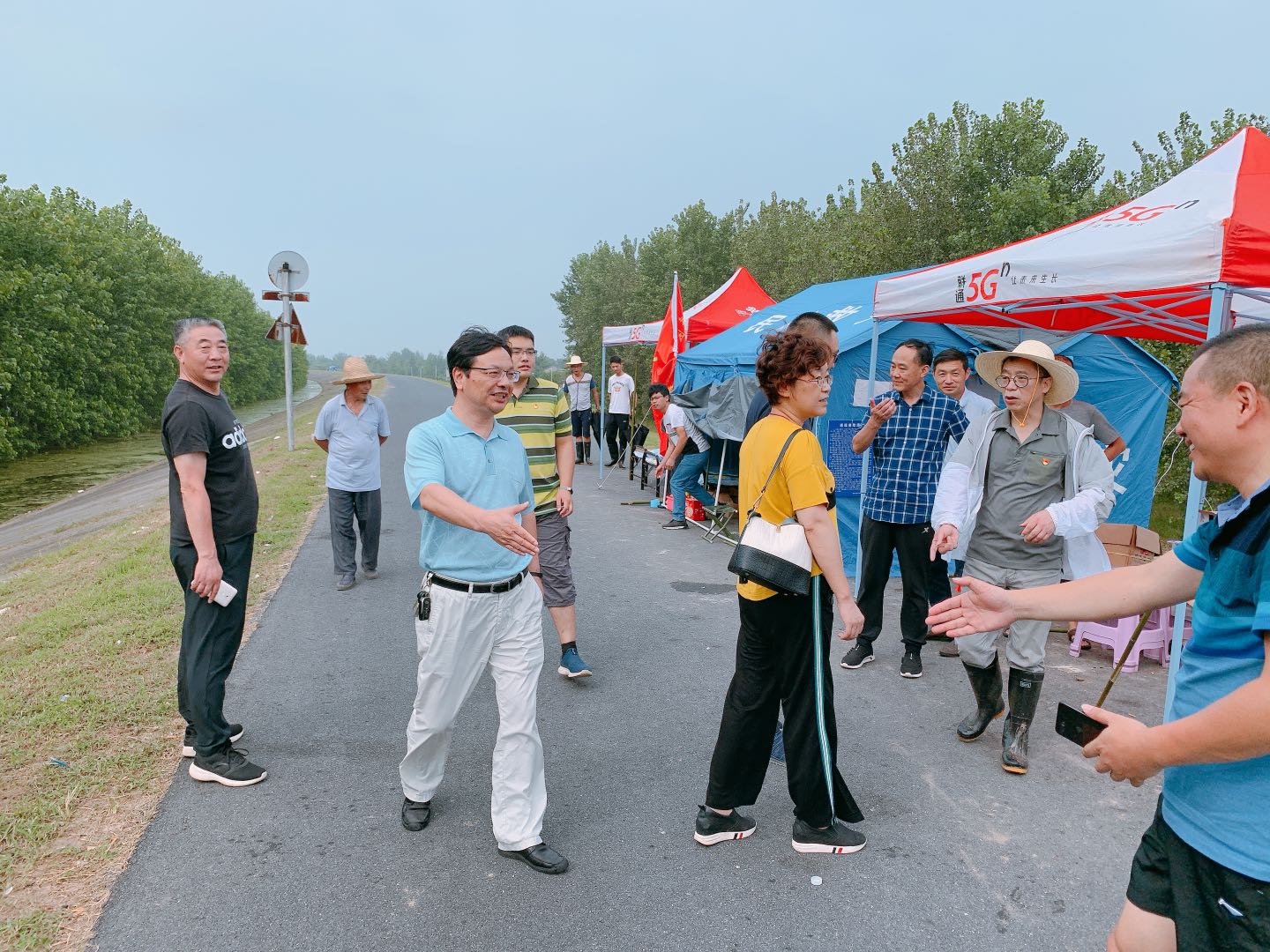 烈日炎炎,酷暑难当。同马大堤上帐篷内高温闷热,条件艰苦。校领导时刻关心同志们在堤上的工作生活情况。校党委副书记张仕庆、副校长李少军和党委委员郭川明分别带队于7月24日、29日上堤慰问第二批和第三批突击队员,并送去牛奶、饮用水和西瓜等慰问物资。