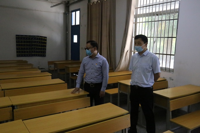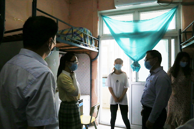 校党委书记杨金奎,校长李卫平在校领导张仕庆、朱庆丰及各相关部门负责人的陪同下,带队前往入学报到点、学生宿舍、教学楼、食堂等处,详细检查学生返校各项工作安排,并看望慰问返校复学的同学们。