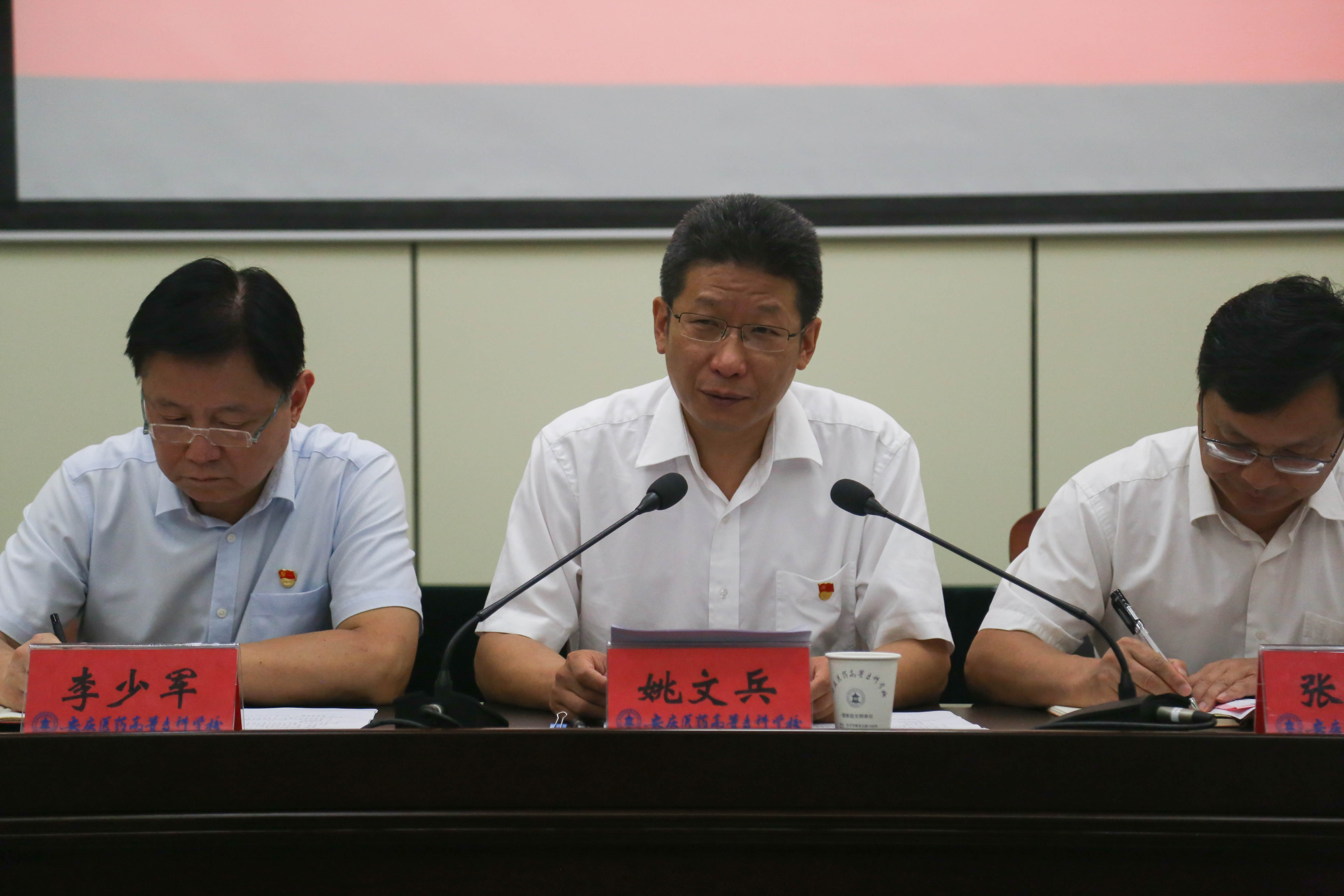 校领导姚文兵、张仕庆、李少军、陈燚、朱庆丰、叶中胜、郭川明、朱三九参加大会。大会由校党委副书记张仕庆主持。