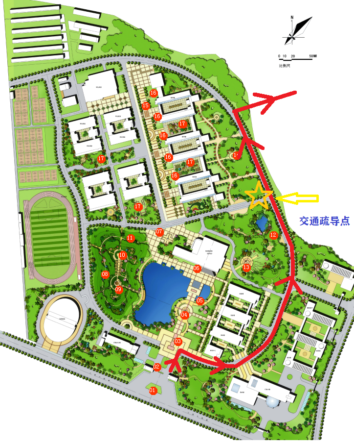 车辆进入校园后右拐进入环道,在教学楼附近交通疏导点停车,学生本人携带行李下车后,车辆立即通过东门临时通道出校园,车辆及家长不得滞留。