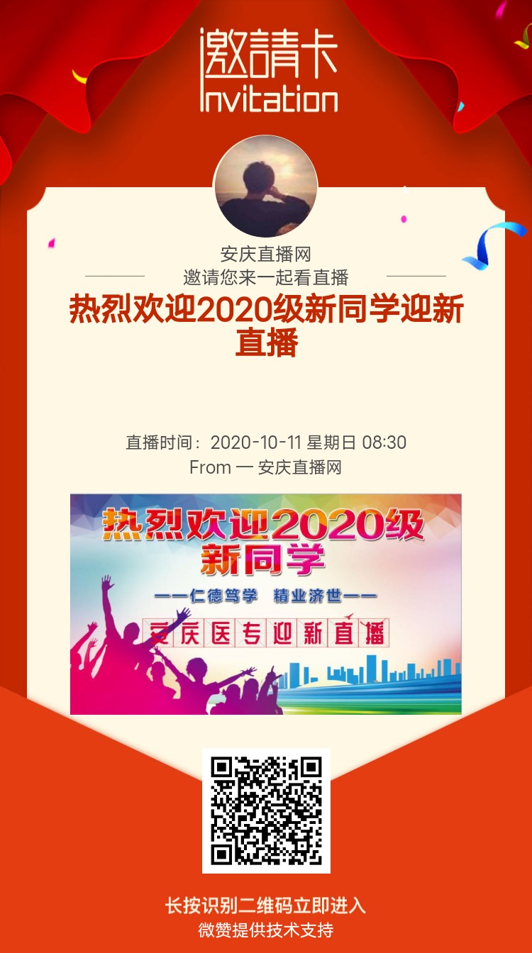 为更加全面形象地展示校园,为新生和家长朋友们答疑解惑,我们将在2020年10月11日上午8:30-下午17:00(通过安庆医药高等专科学校官方抖音、安庆直播网等进行迎新现场直播,让家长放心、让同学们满意。