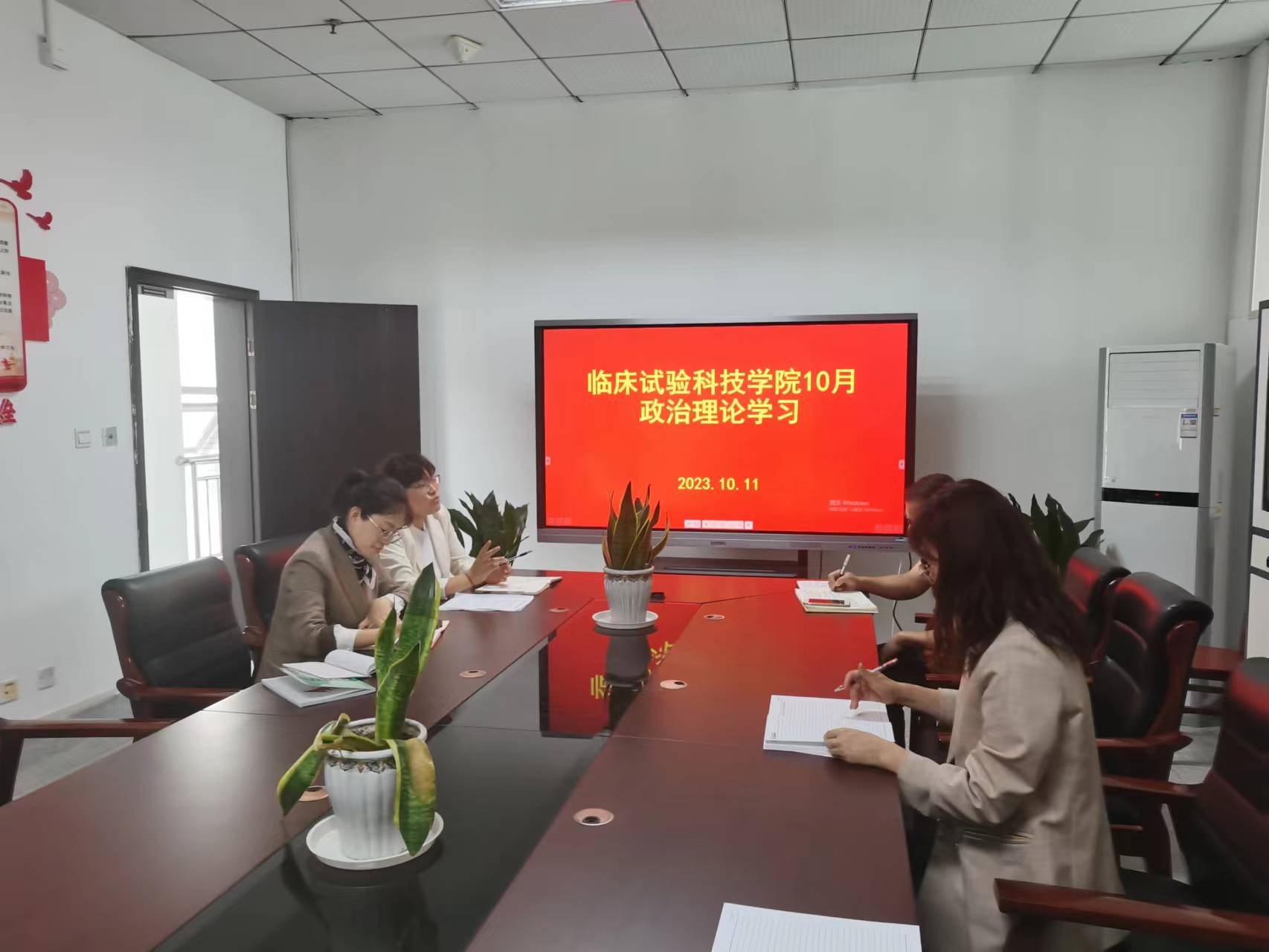 10月11日中午,临床试验科技学院全体党员在学院会议室开展10月政治理论学习会,会议由直属支部副书记任丽英主持。