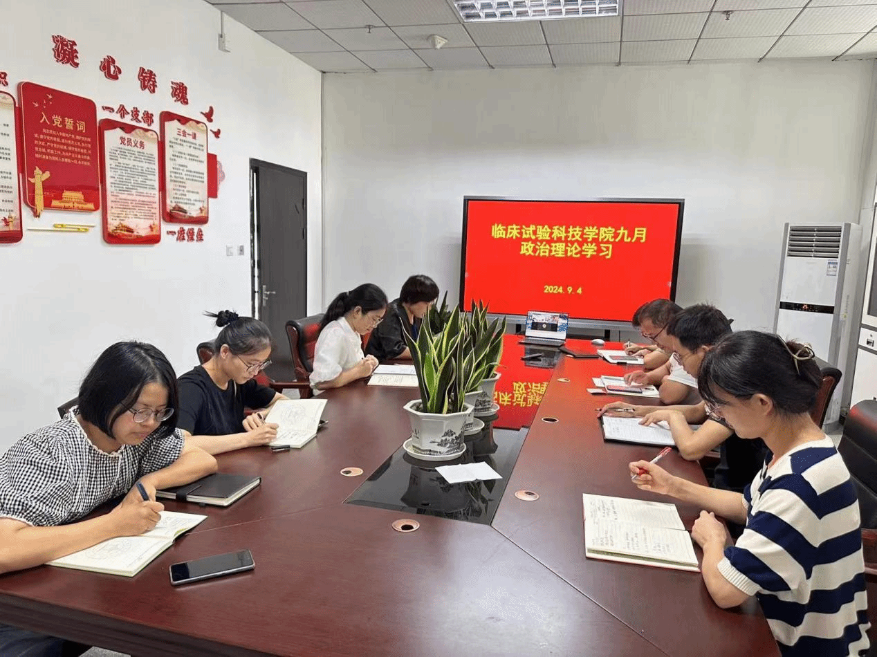 9月4日,临床试验科技学院直属党支部组织全体党员开展了九月份政治理论学习活动。此次会议由党支部副书记任丽英主持,周焕院长以线上形式参加会议。