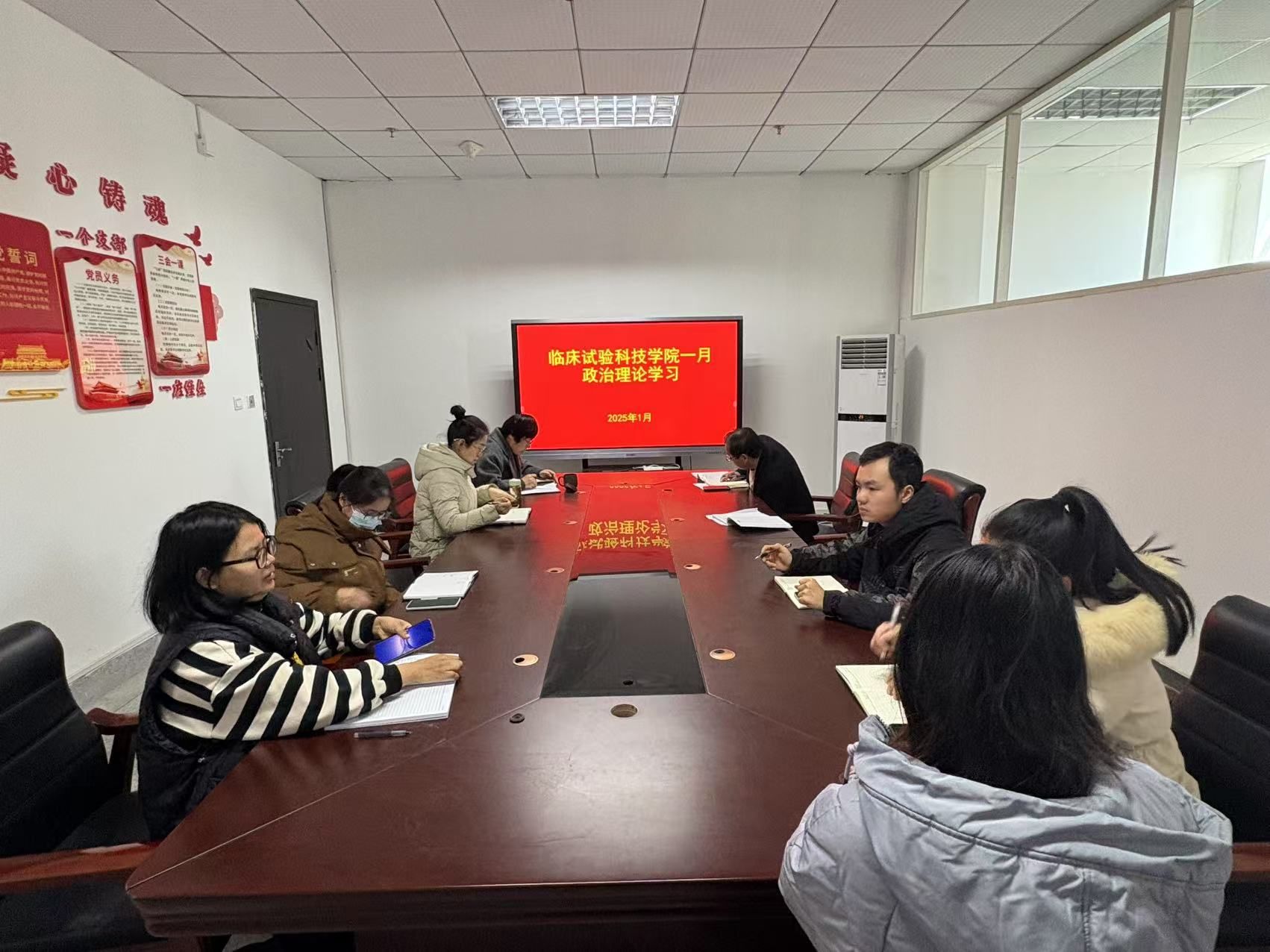 2025年1月15日,临床试验科技学院在党员活动室组织全体党员进行政治理论学习,活动由学院书记任丽英主持。