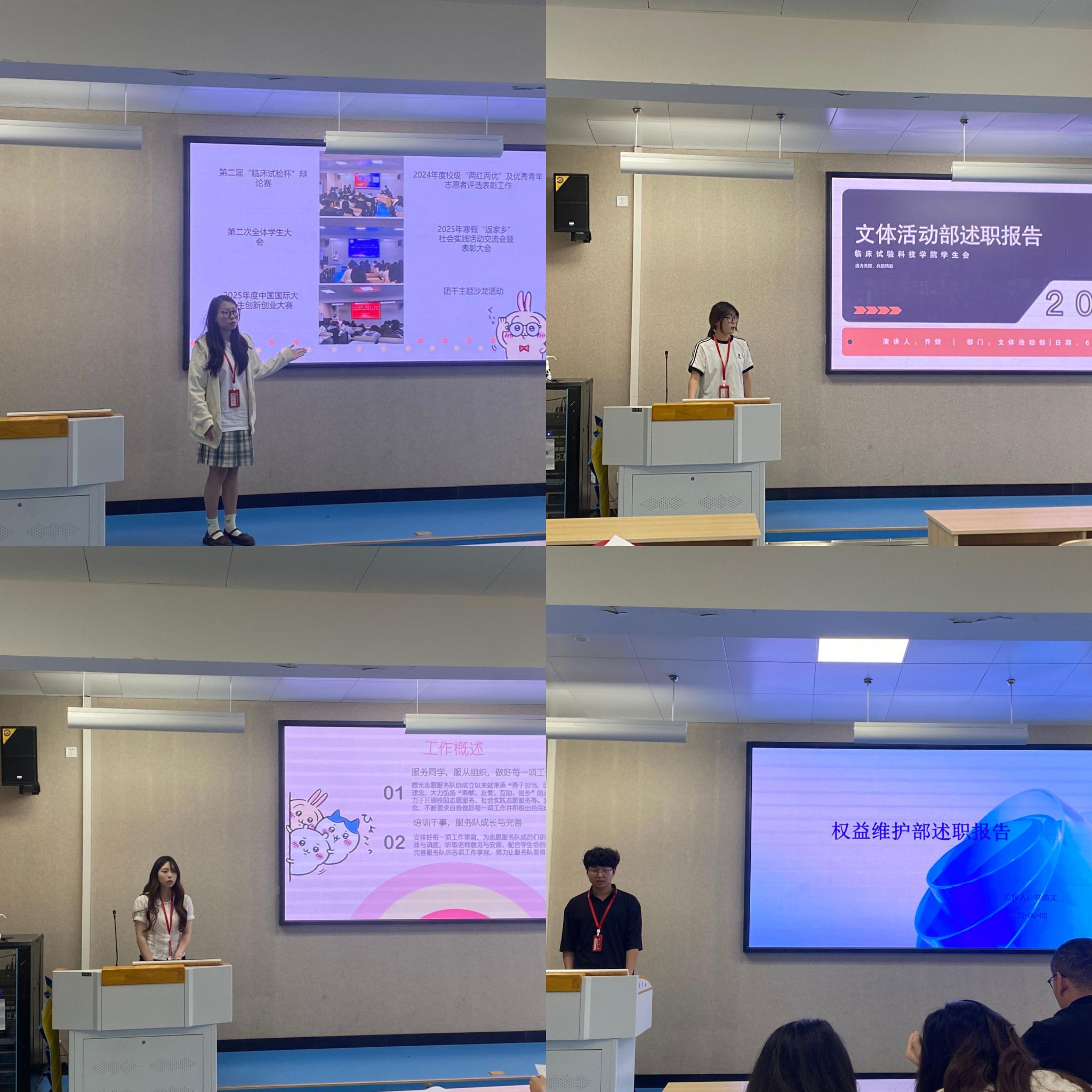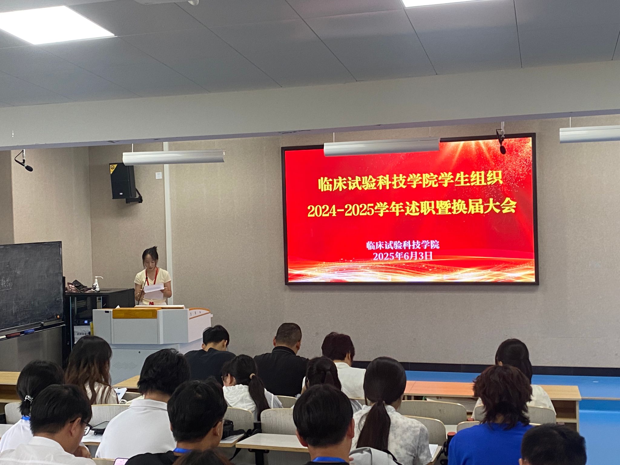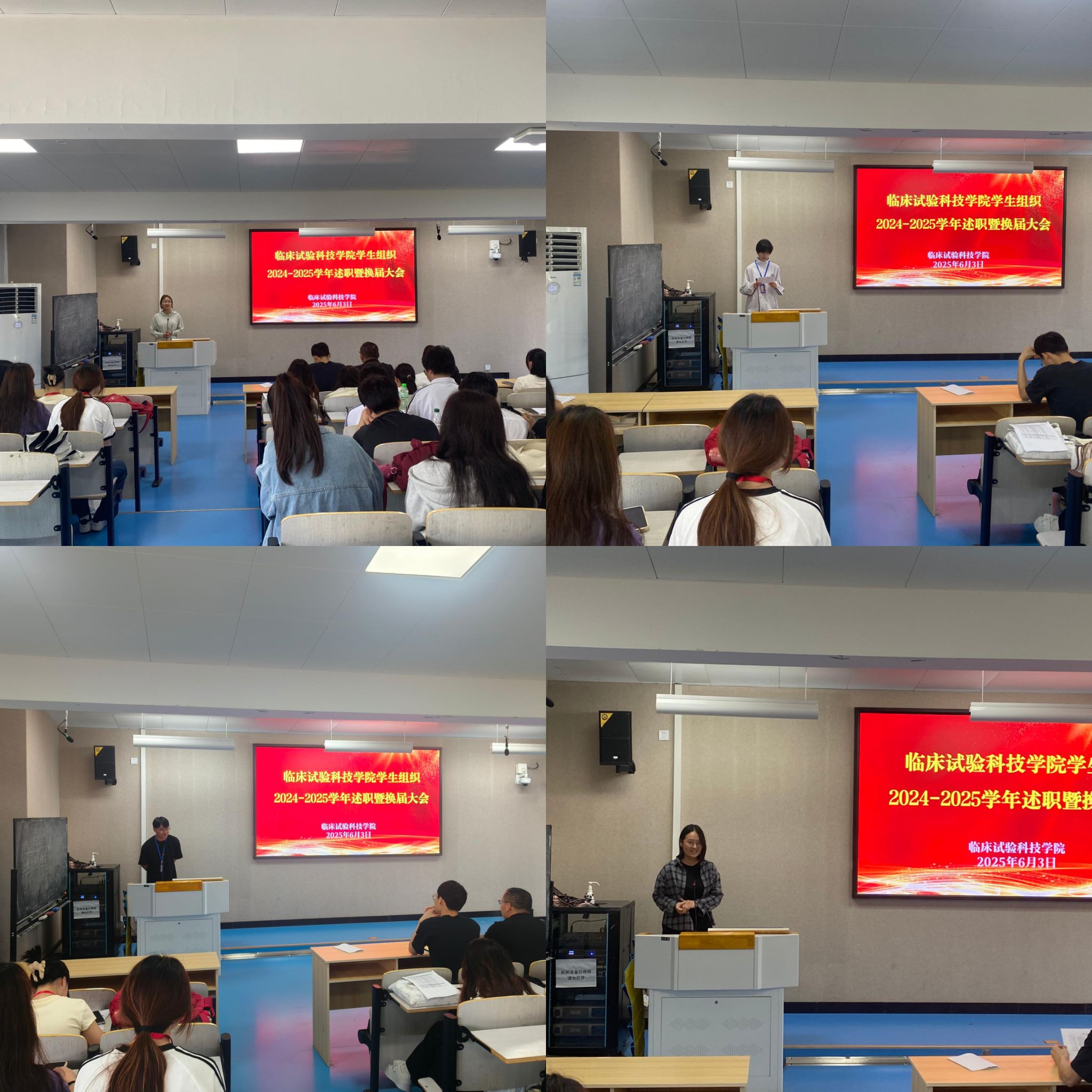 为进一步加强学生组织建设,激发学生组织的活力与凝聚力,2025年6月3日,临床试验科技学院举办院级学生组织2024—2025学年述职暨换届大会,学院党支部书记任丽英、团总支书记刘双虎、学院辅导员及第二届学生组织全体成员齐聚一堂,共同见证这一承前启后的重要时刻。