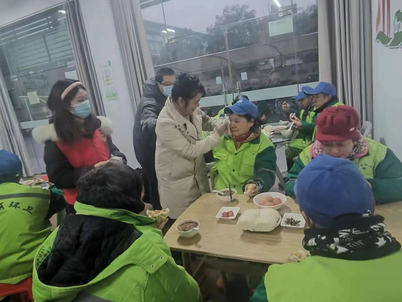 “来来来,喝了这碗腊八粥,身上就不觉得冷了。”2月8日上午,安徽省淮南市的新时代志愿者联合会以“我为群众办实事”实践活动为抓手,举办了“浓浓腊八粥,幸福暖冬行”环卫工人慰问活动,临床试验科技学院的张子馨同学积极响应号召,主动请缨参与,为在寒风中坚守一线的环卫工人们送上暖心关怀。
