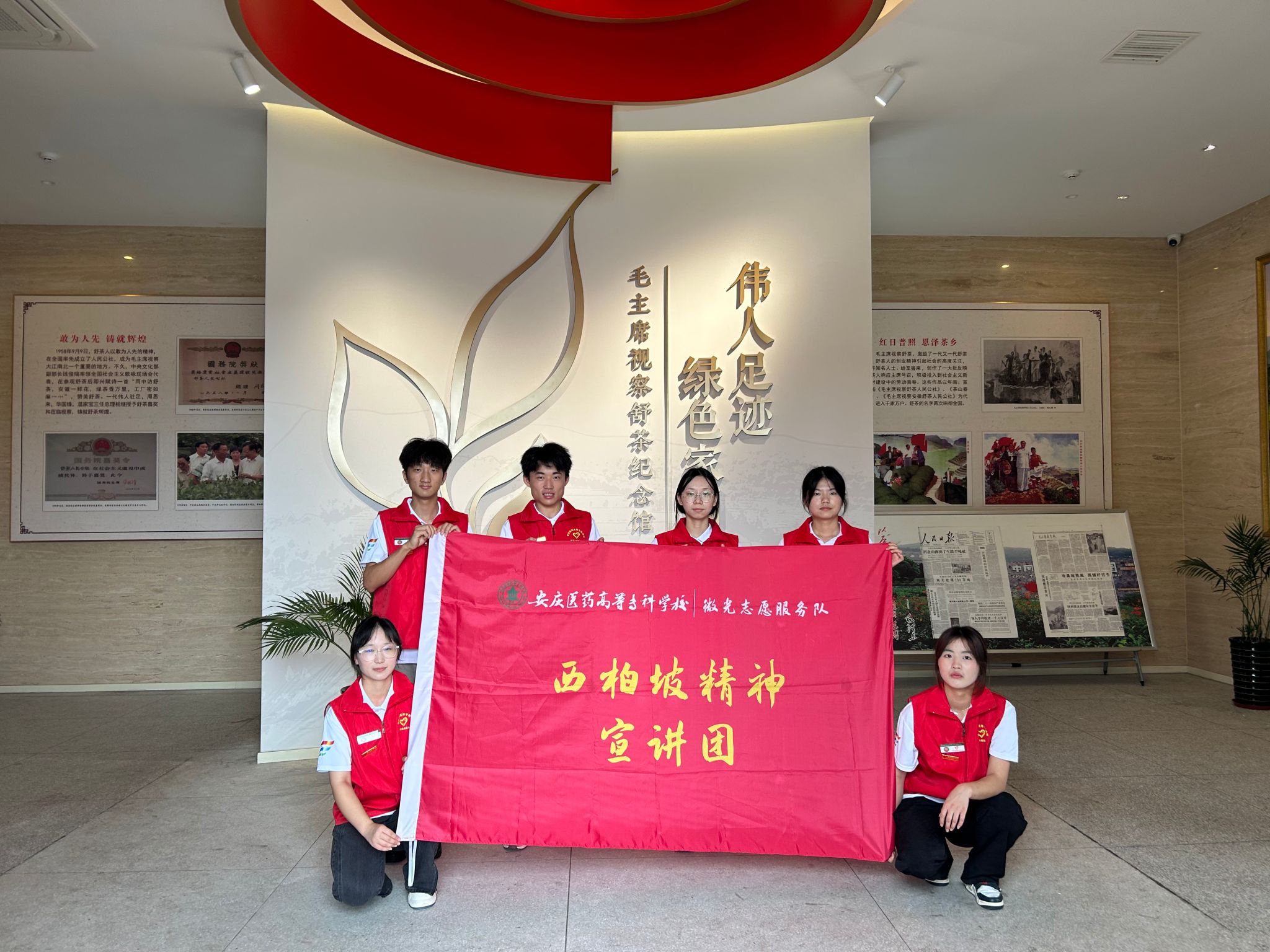 追寻红色足迹,汲取奋进力量。为学习革命精神,感悟思想伟力,7月15日,微光志愿服务队一行赴舒城县舒茶镇全国红伟爱国主义教育基地——毛主席视察舒茶纪念馆参观学习。在舒茶纪念馆,同学们认真聆听讲解员讲述的毛主席视察舒茶人民公社的过程和舒茶发展历史,仔细参观了舒茶人民公社陈列室、展览室的相关图文资料和实物,亲身感受了那火红年代的历史记忆,大家被“敢为人先”的舒茶精神和领导伟人的人民情怀深深触动。