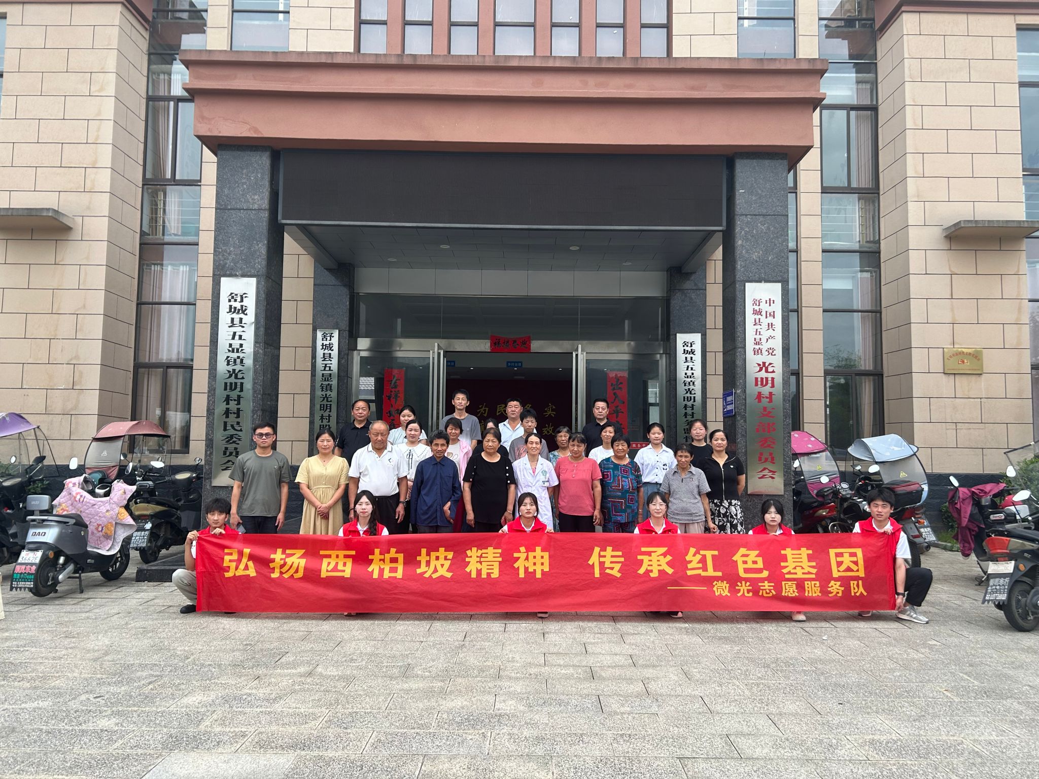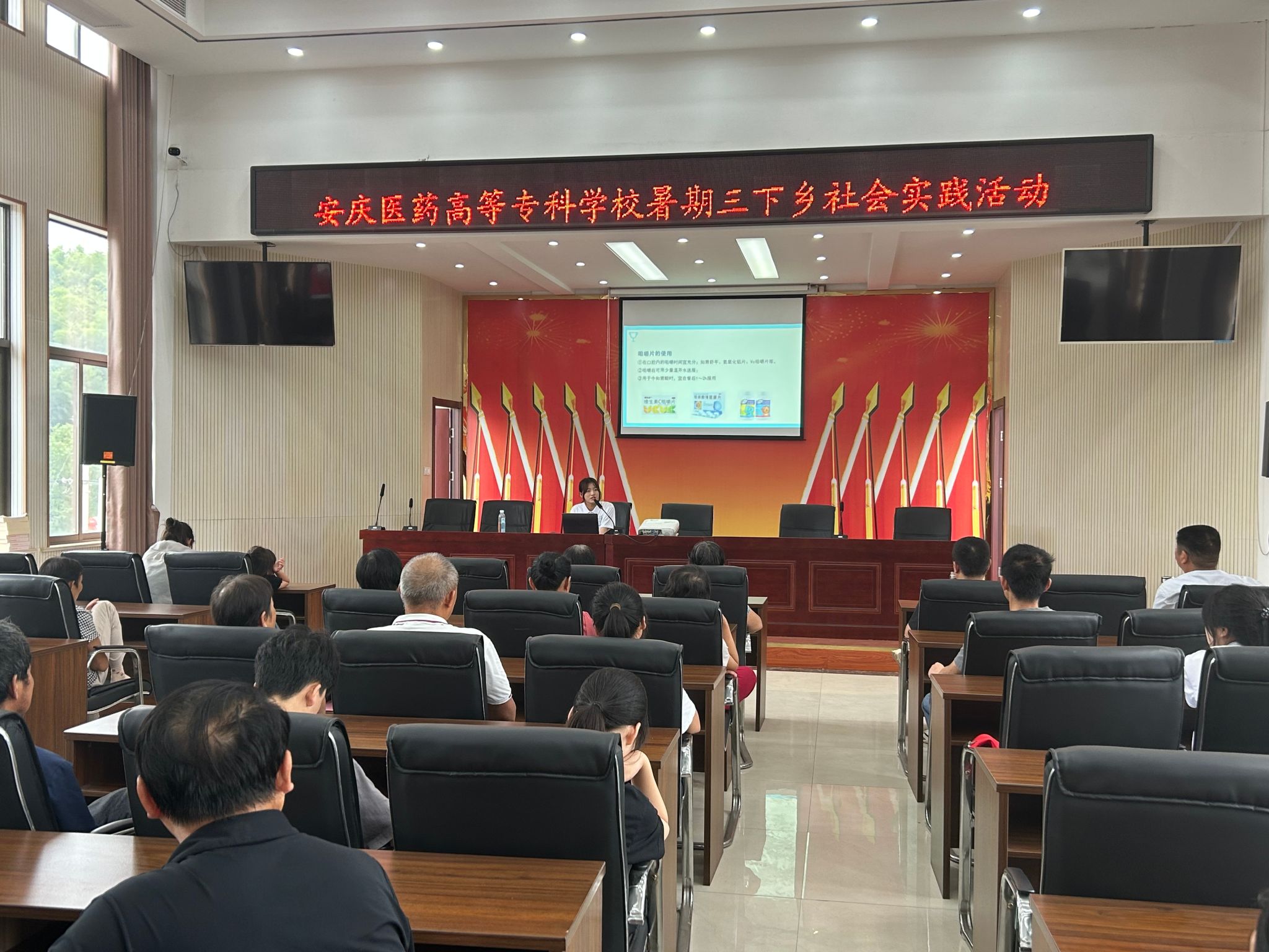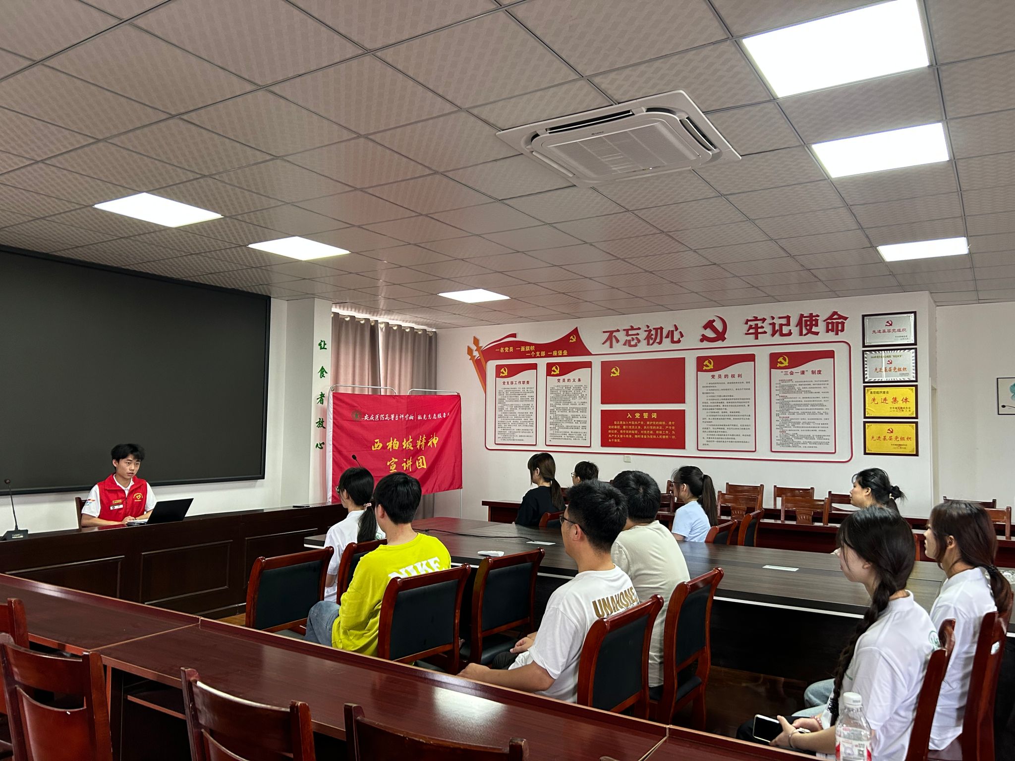 弘扬西柏坡精神,传承红色基因。安庆医药高等专科学校微光志愿服务队是2024年全国大学生西柏坡精神志愿宣讲团,依托暑期三下乡的平台,致力于推动西柏坡精神在全社会的广泛传播和深入实践。7月15日—16日,微光志愿服务队分别赴城关镇七星村、安徽舒州农业科技有限公司、五显镇光明村开展西柏坡精神宣讲。面对不同群体,服务队成员创新宣传方式,结合案例和视频,生动演说了以“谦虚谨慎、艰苦奋斗、实事求是、一心为民”为核心内核的西柏坡精神,同时服务队以“传承西柏坡精神,走好新时代‘赶考路’”来表达在新时代背景下,作为各行各业的一员,每个人都应该积极传承和弘扬西柏坡精神,为以中国式现代化推进中华民族伟大复兴贡献自己力量。