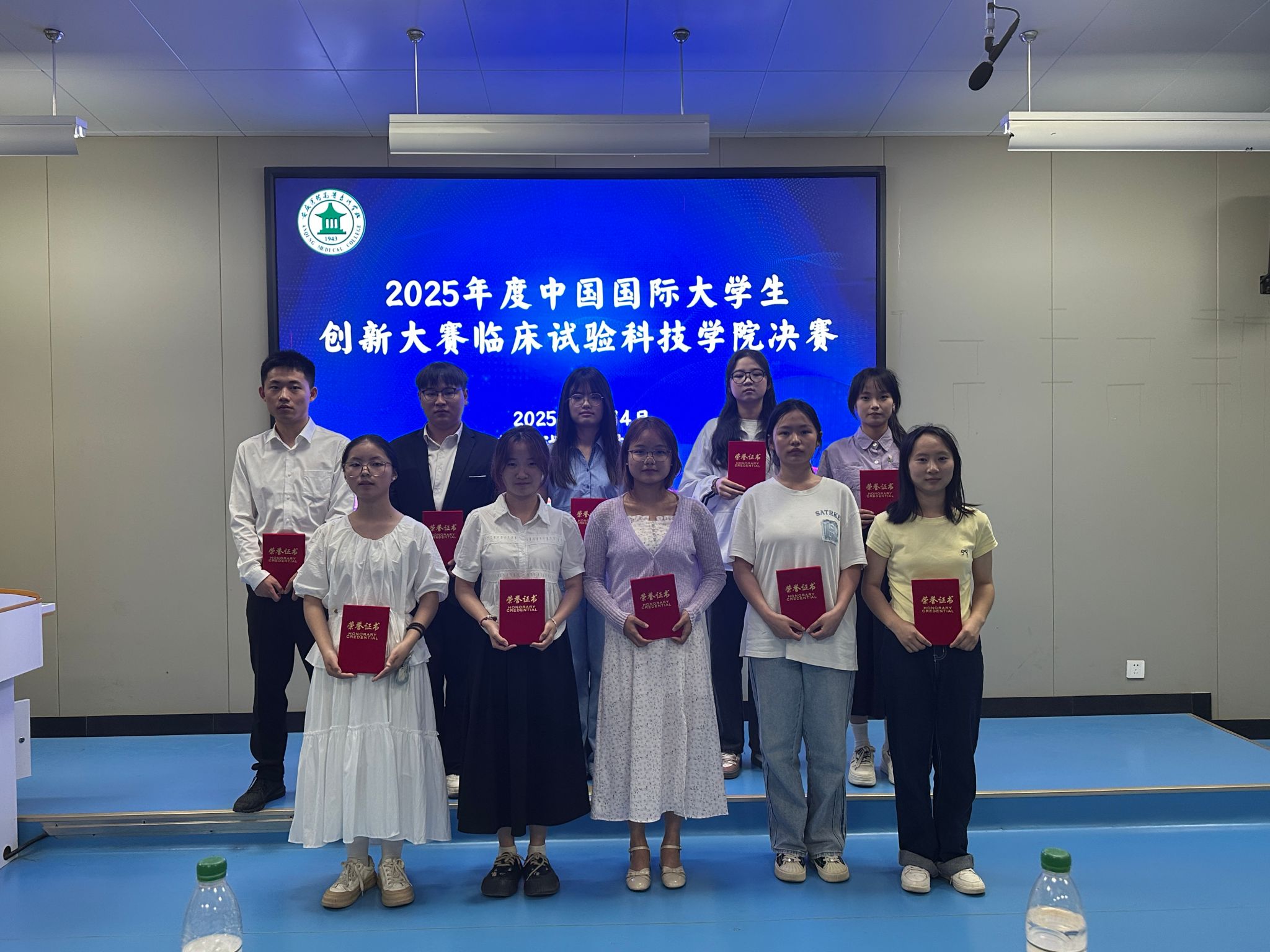 为激发学生创新潜能,搭建实践交流平台,2025年5月14日,临床试验科技学院在第八阶梯教室举办2025年度中国国际大学生创新大赛学院决赛。