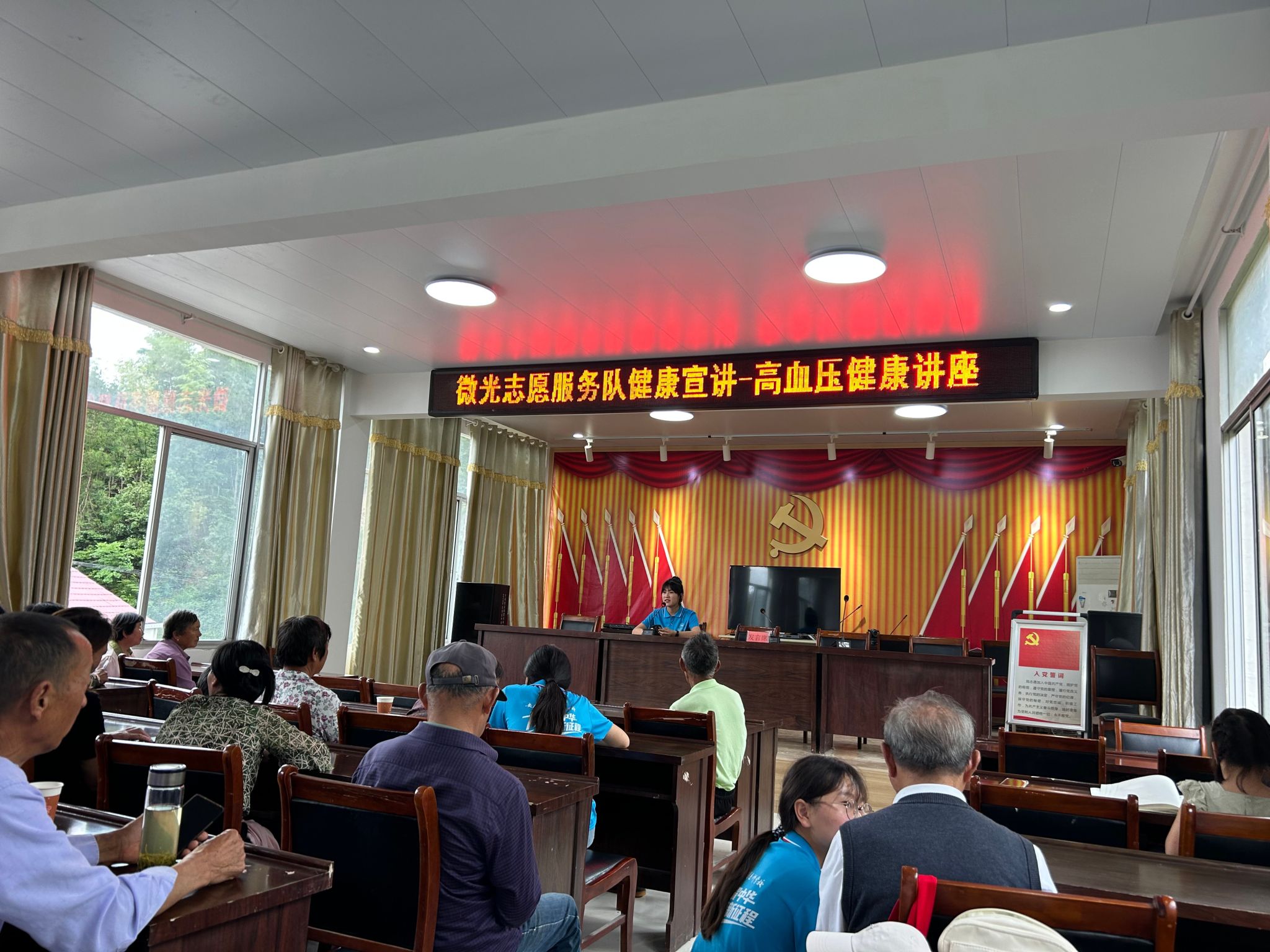 普及安全用药,守护居民健康。6月29日上午,微光志愿服务在岳西县菖蒲镇白云寨村党群服务中心开展理论宣讲活动。服务队宣讲员通过真实案例与专业知识相结合的方式,为村民带来一场生动的健康小课堂。针对安全用药,成员们不仅详细讲解药物储存需避光、防潮的条件,以及服用剂量和时间的精准要求,还特别通过模拟家庭用药场景,指出村民常出现的“症状减轻就停药”“多种药物随意混搭” 等错误做法。在高血压防控宣讲中,团队借助血压测量仪为村民免费测量血压,根据测量结果进行一对一分析,并针对白云寨村民高盐饮食的生活习惯,提出减少腌制品摄入、使用定量盐勺等具体预防措施。