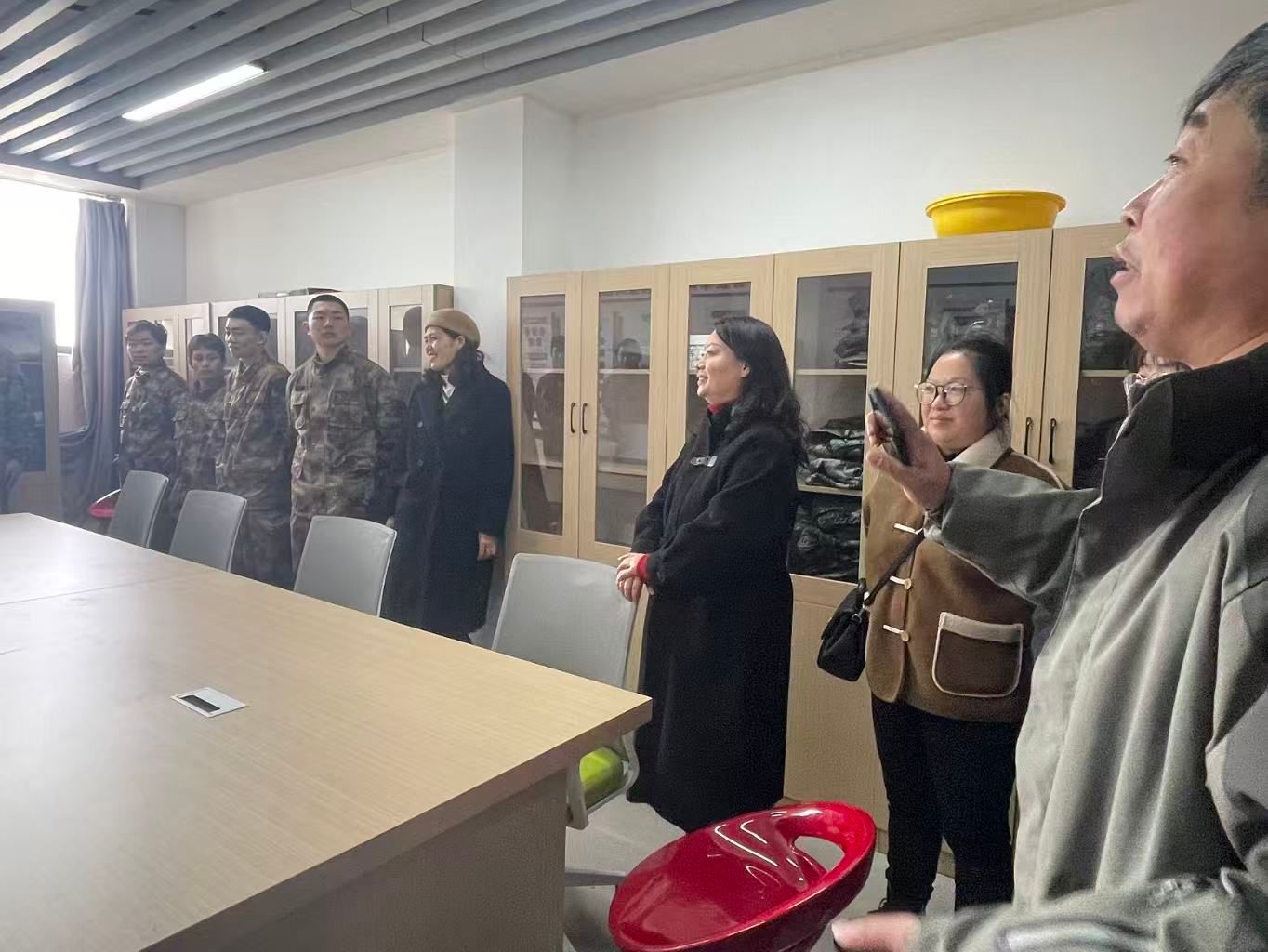 为鼓舞参军学子士气,筑牢从军报国信念,2026年2月28日中午,医学院党总支书记、院长刘燕、副书记王华庆带领入伍学生辅导员,深入“一站式”学生社区——国防先锋,看望慰问医学院2026年春季从学校应征入伍的11名学生。