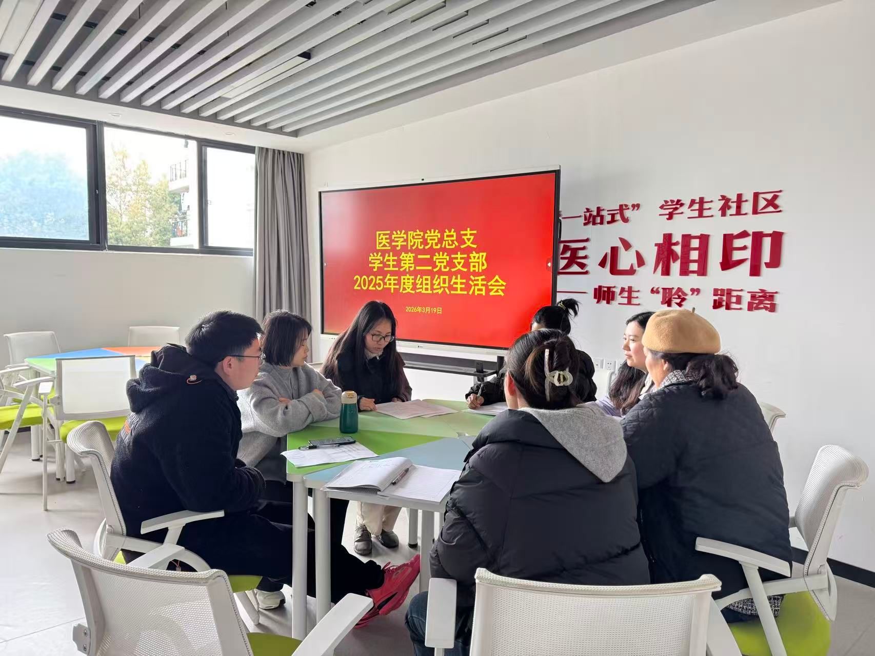 2026年3月19日,医学院党总支学生第二党支部在杏林党建组织召开2025年度组织生活会暨民主评议党员大会。会议由支部书记陈梦主持,支部全体党员参加。