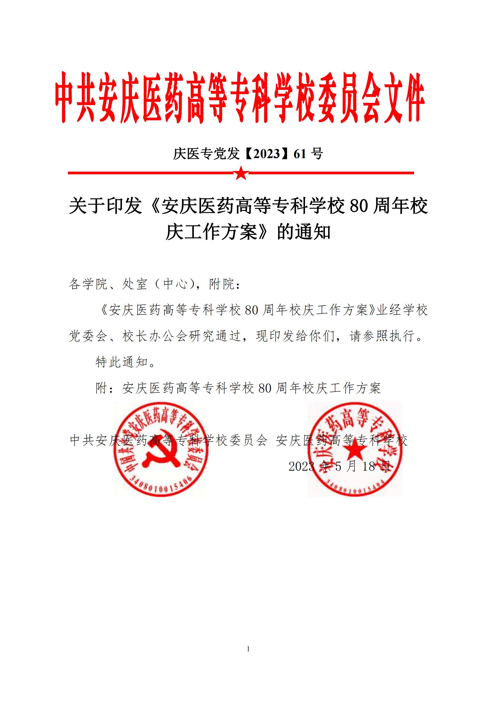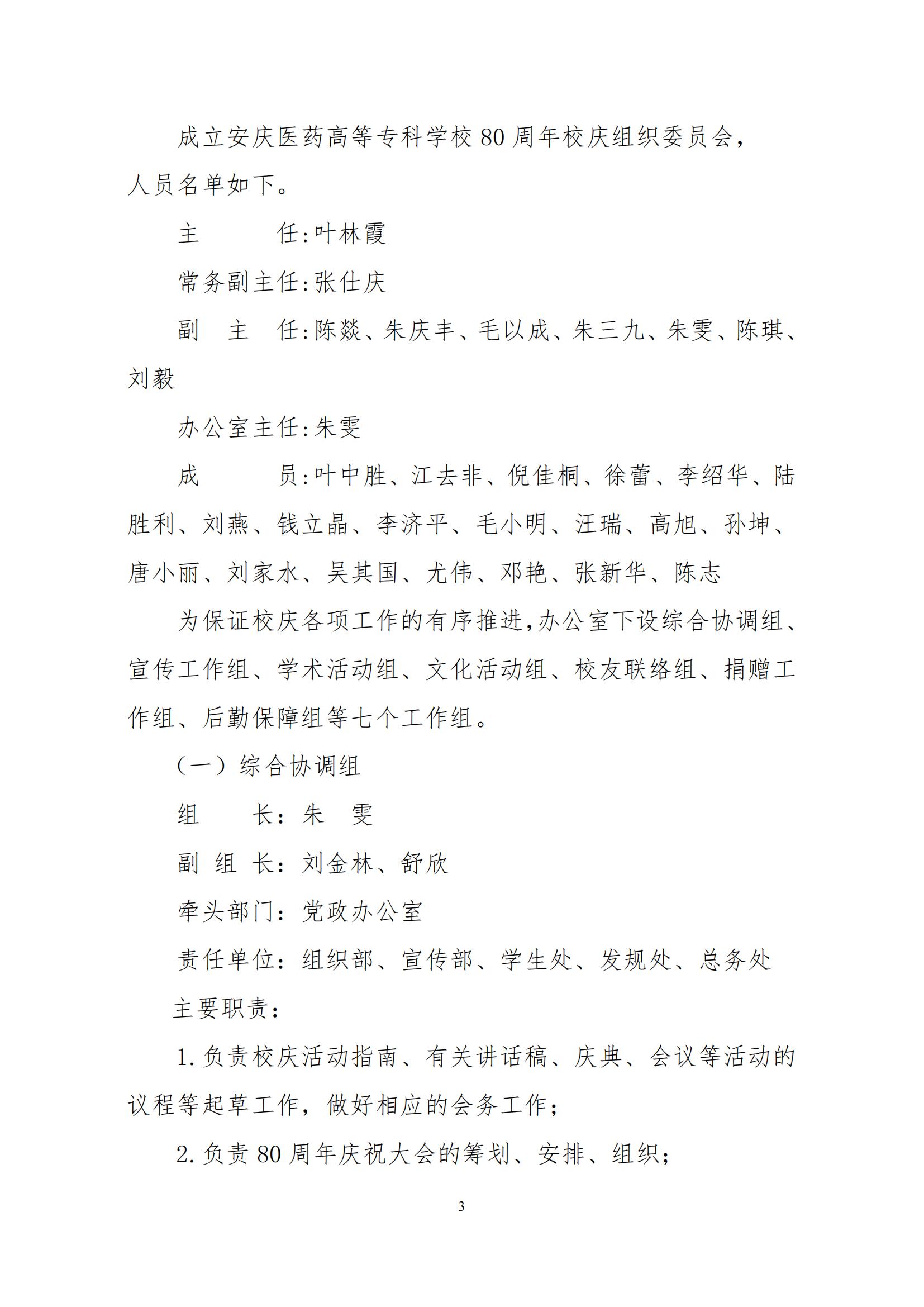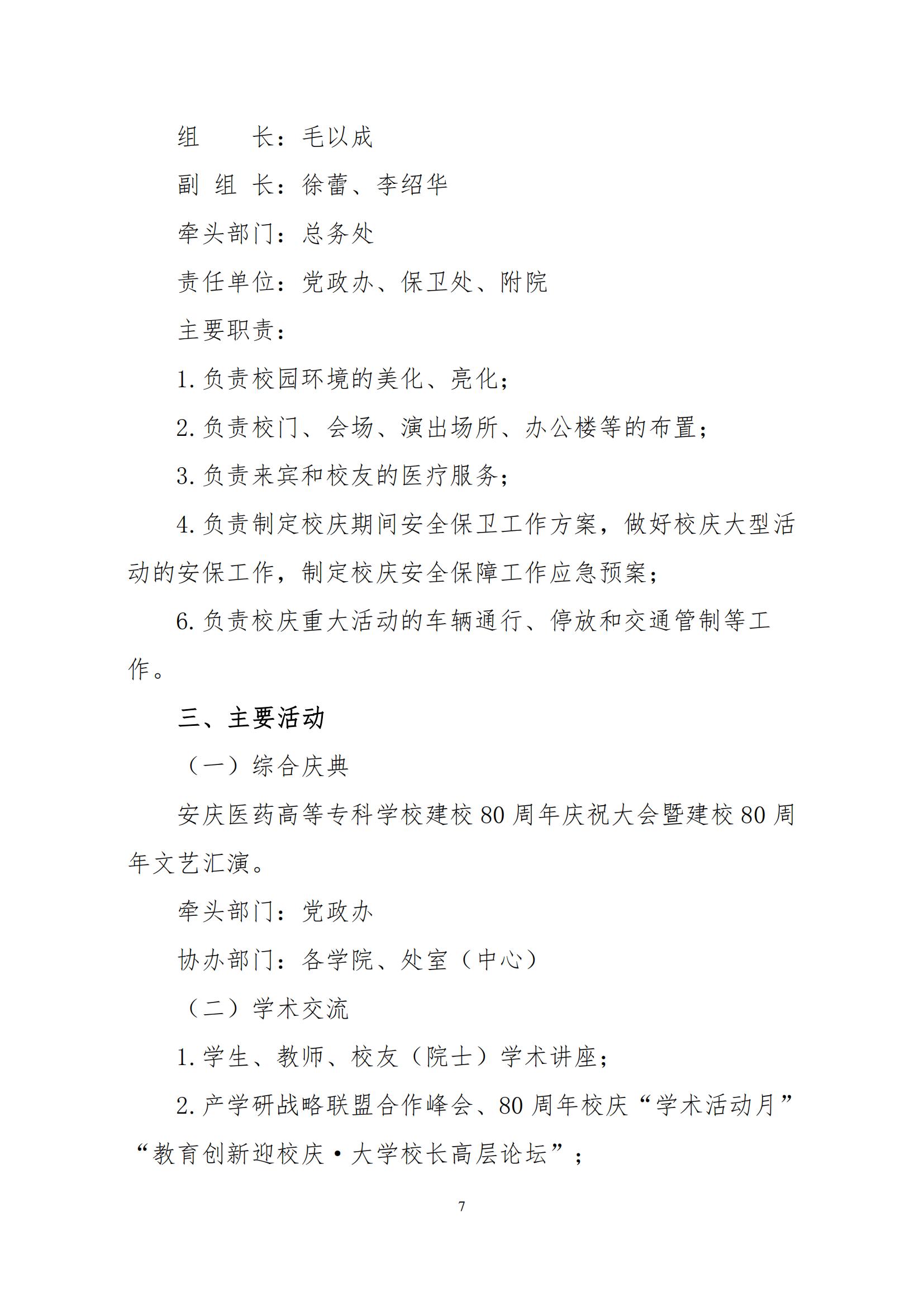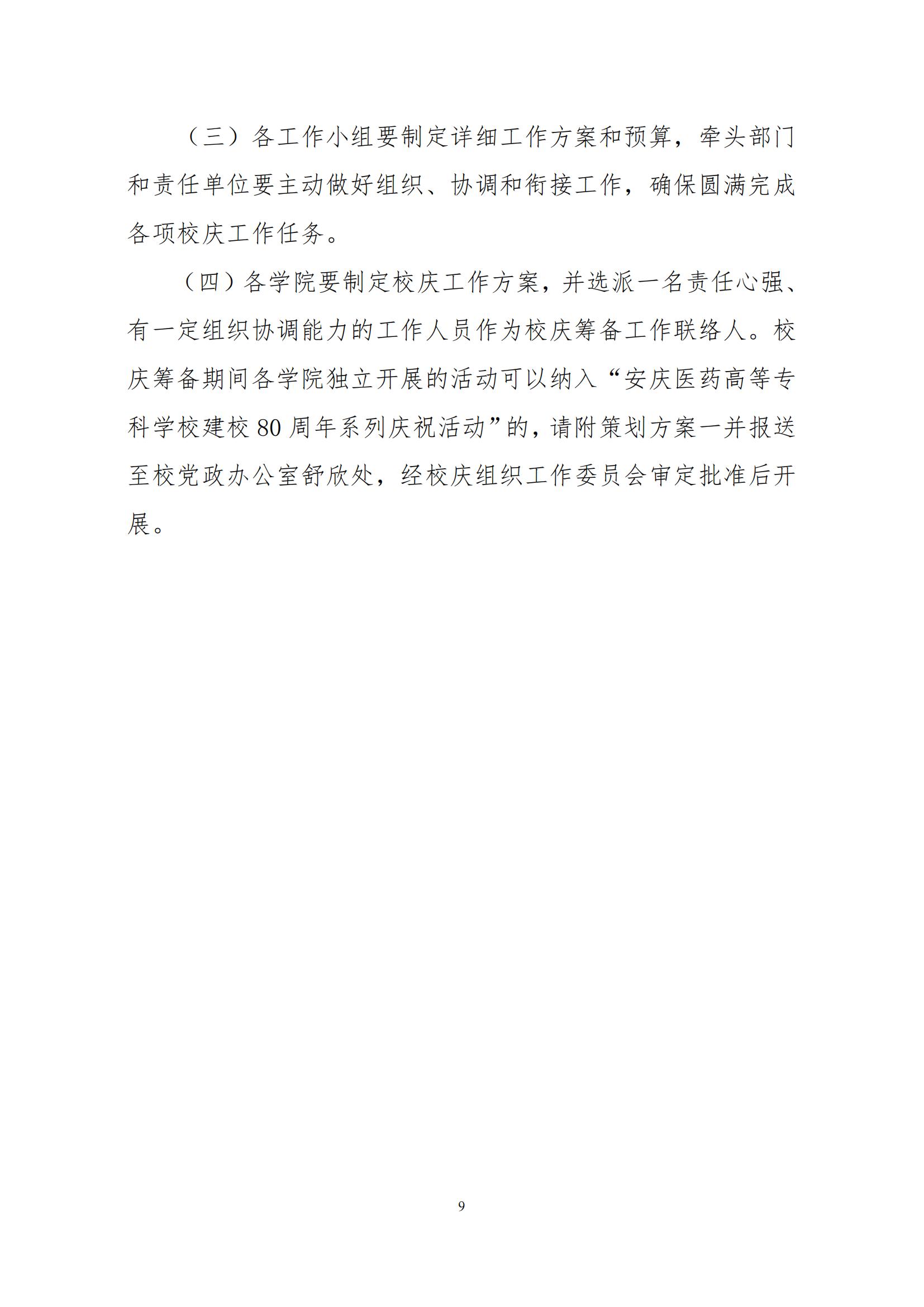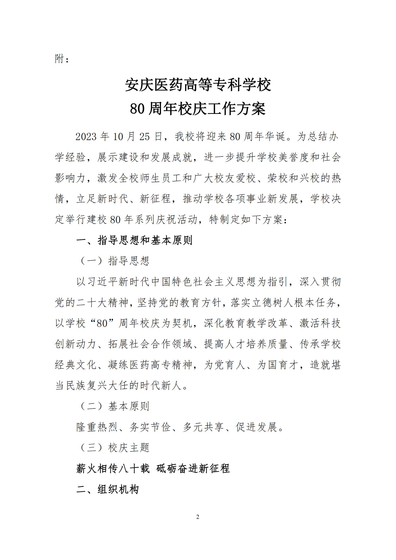安庆医药高等专科学校80周年校庆工作方案