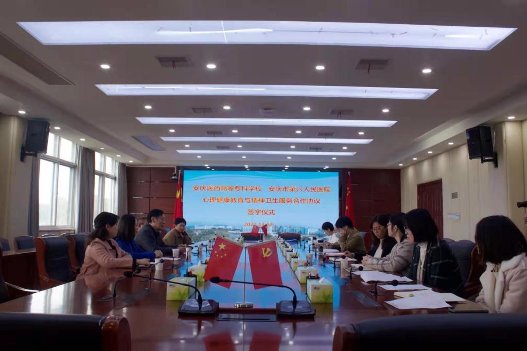 为进一步做好高校学生的心理健康教育工作,帮助学生成长成才,维护学校和学生的和谐稳定,进一步开展“校医合作”,11月19日上午,我校与安庆市第六人民医院代表在行政楼三楼大会议室举行心理健康教育与精神卫生服务合作协议签字仪式。