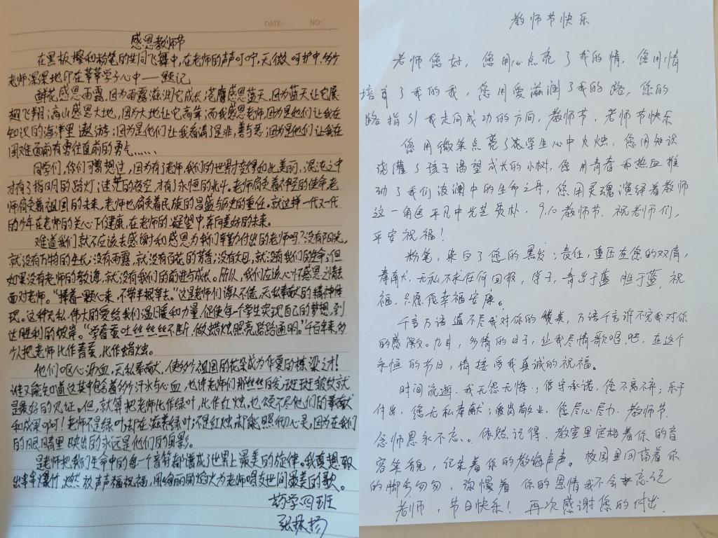 一份份感恩信,虽有着各不相同的内容,但却表达了对老师的最真挚的问候,形成一首教师节温馨和谐的颂歌。(撰稿人:耿恩爱;供图人:单佳;审批人:陈玉,胡维维)
