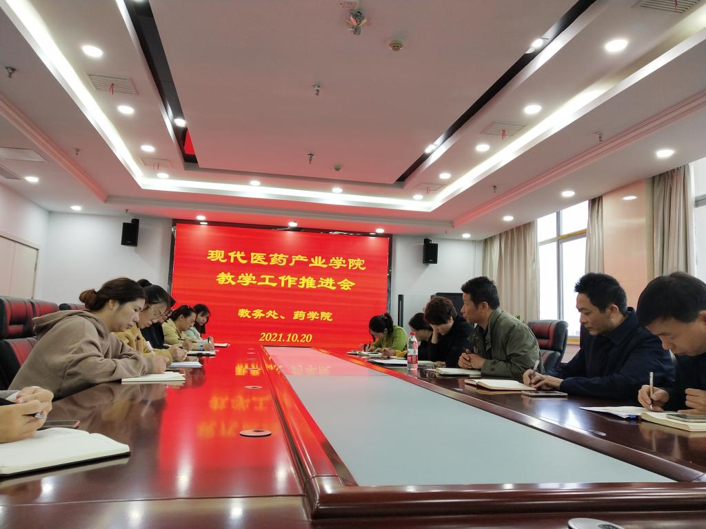 10月20日上午,现代医药产业学院教学工作推进会在图书馆6楼会议室举行。校党委副书记、校长姚文兵,教务处处长汪瑞出席会议,药学院党总支书记、院长刘毅及参与产业学院教学和管理的骨干教师参加了此次会议,会议由刘毅主持。