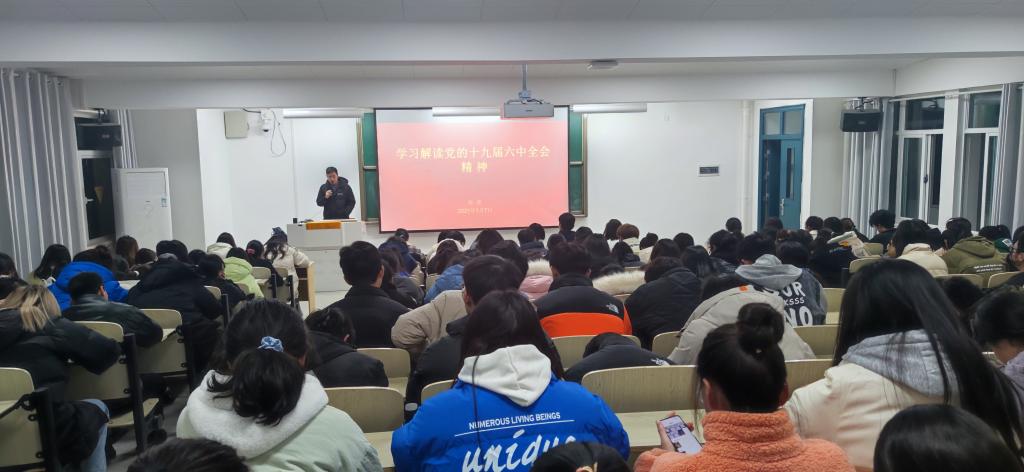 会上,各班团支书领学了党的十九届六中全会公报,并从“三个需要”“七个部分”“两个确立”“五大历史意义”“十个坚持”“一个根本问题”“四个必须”等方面进行了详细阐述。各班级同学集体了解会议的相关内容,学习会议精神,切身感受会议的重要意义和价值。