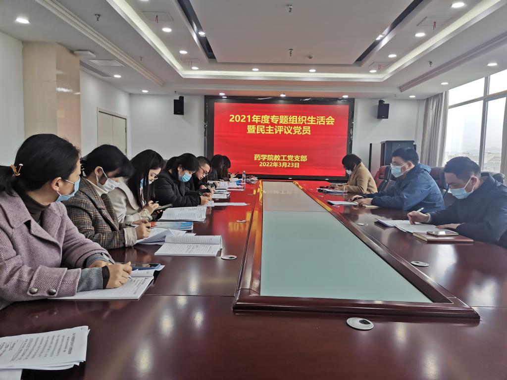 3月23日,药学院教工党支部召开2021年度组织生活会。校党委委员、副校长朱庆丰以普通党员身份参加了会议,校党委委员、药学院党总支书记刘毅及支部全体党员参加会议。