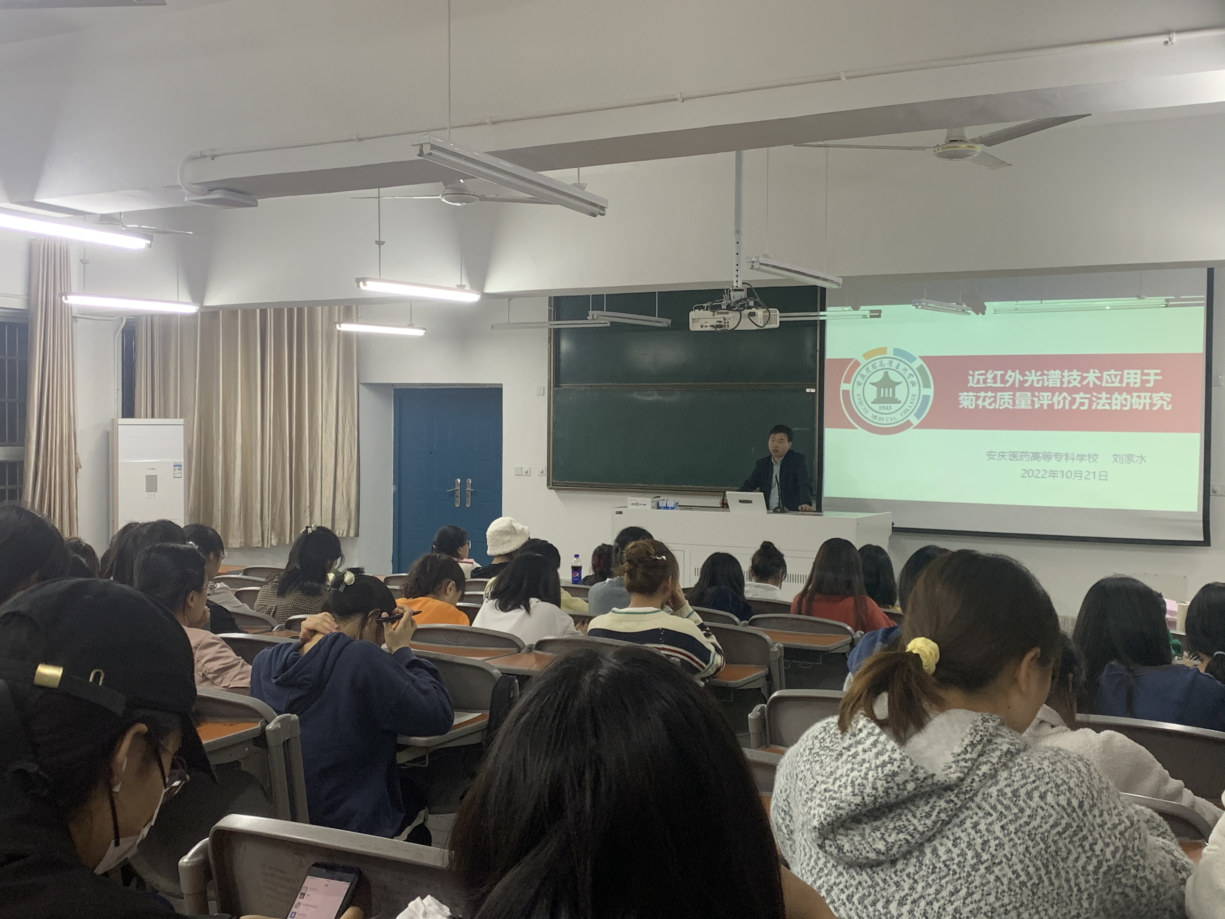 为更好的让学生了解现代检测手段在中药质量评价方面的应用现状,10月21日,刘家水老师在第一阶梯教室开展了题为“近红外光谱技术应用于菊花质量评价方法的研究”的学术讲座,广大教师及相关专业学生聆听了讲座。