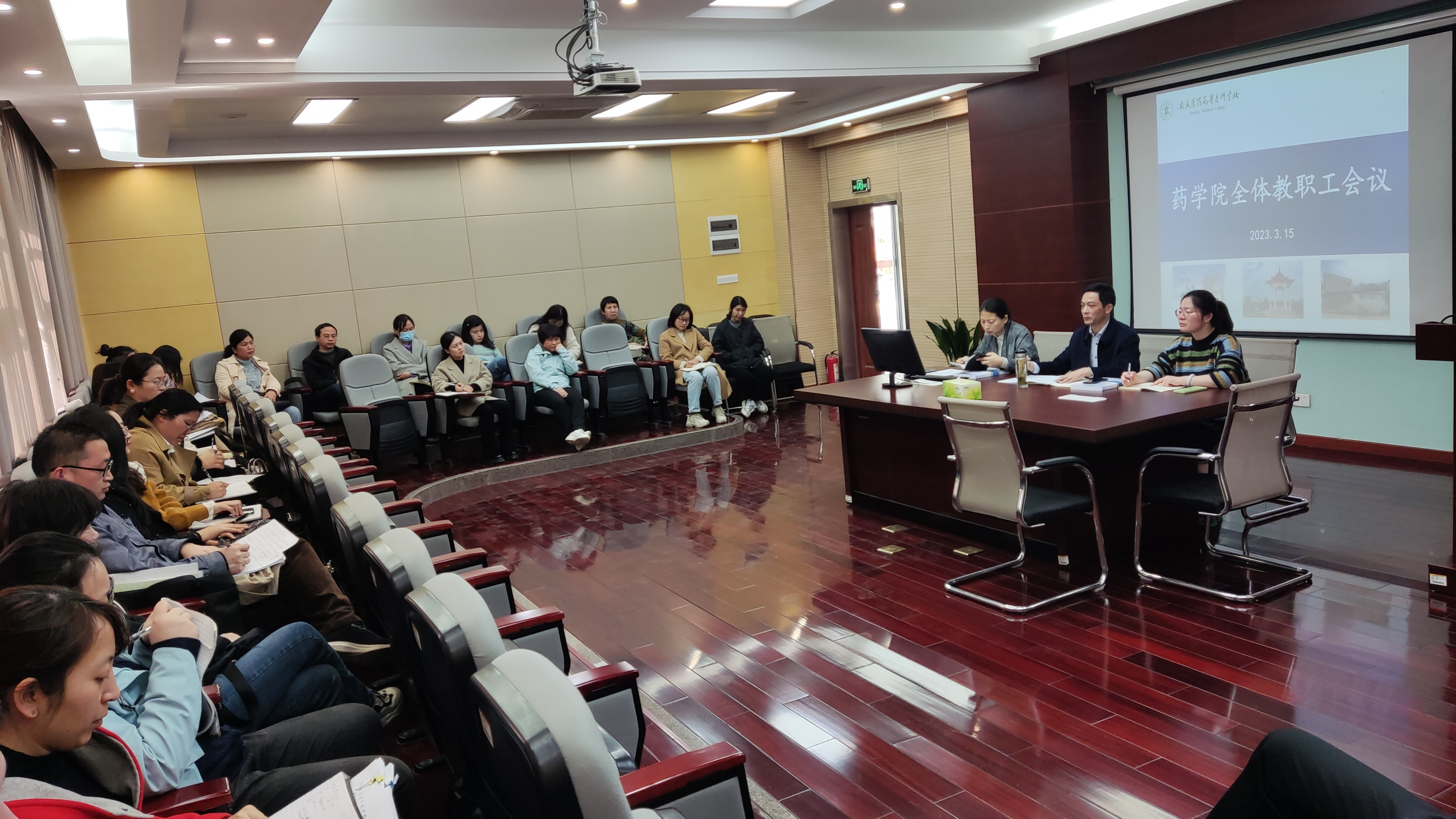 3月15日下午,药学院在实训楼一楼会议室召开“凝心聚力,促学校高质量发展”全体教职工大会。药学院院长刘毅主持会议,药学院全体教职员工参加会议。