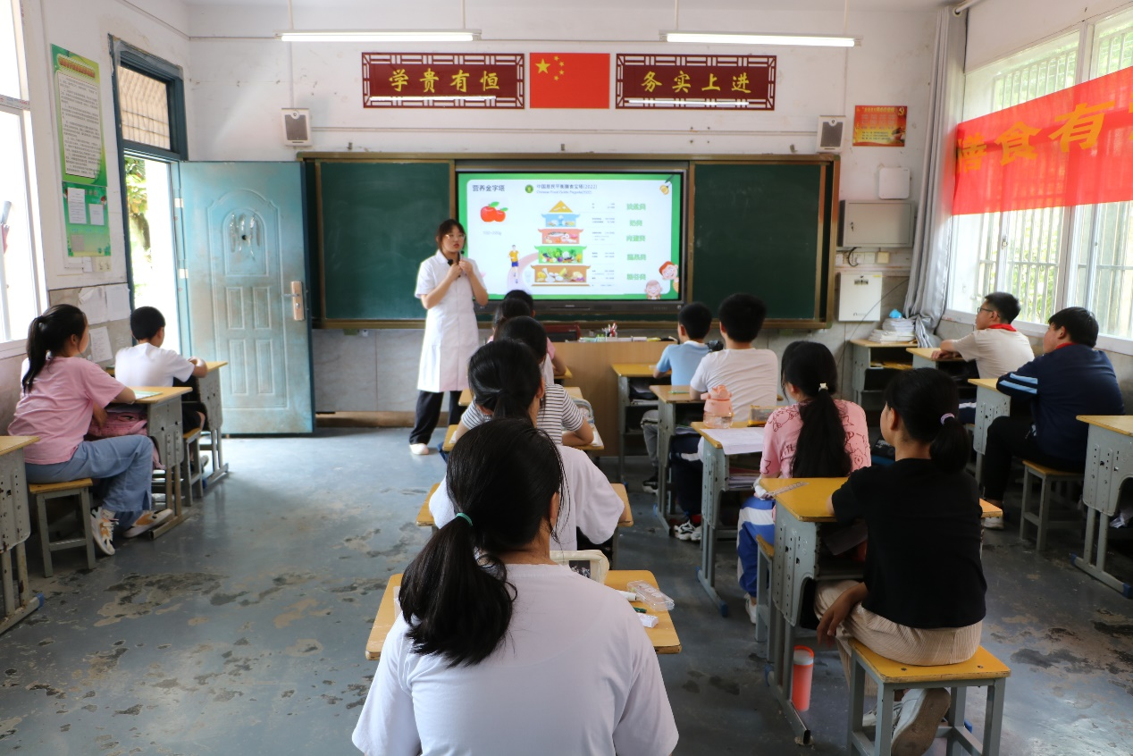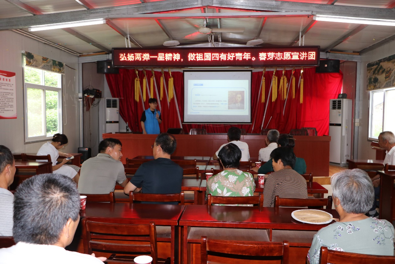 26号上午,志愿者服务队首先到达石台县六都镇中心小学开展“两弹一星”精神专题宣讲和营养健康膳食讲座。志愿者给小朋友们细心讲解了建国以来我国“两弹一星”事业的发展和2022年版中国居民平衡膳食宝塔,并通过有奖问答的形式帮助学生巩固学习成果,真正做到宣讲落到实地。实践的五天中,志愿服务队先后前往六都敬老院、城东和平社区、仁里镇养老服务中心、黄铺村村委为当地村民进行了科普讲座,叮嘱老人夏季注意健康饮食,成为自己的营养配餐师。