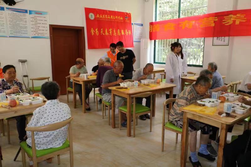 而后几天,志愿团队一直奔赴在配餐送餐第一线,先后前往城东和平社区、仁里镇养老服务中心和双港镇山明村老年食堂开展了送餐服务活动。赴双港镇山明村开展老年助餐活动时现场气氛热烈,桐城市民政局张慧敏副局长和双港镇党委副书记即我校2011届校友叶子昂前往现场指导三下乡团队开展志愿助餐工作。助餐结束后,叶子昂还与学弟学妹们分享工作经验,鼓励他们为乡村振兴发力,做祖国的四有好青年。