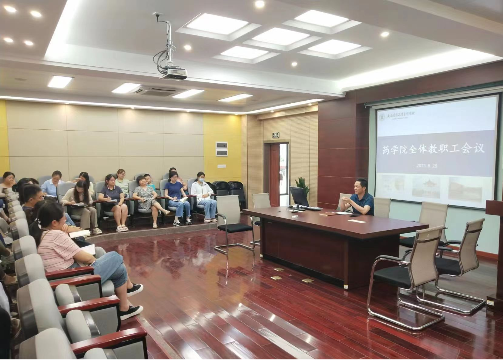 8月30日下午,药学院在实训楼一楼会议室召开新学期全体教职工大会。校党委委员、药学院院长刘毅主持会议。