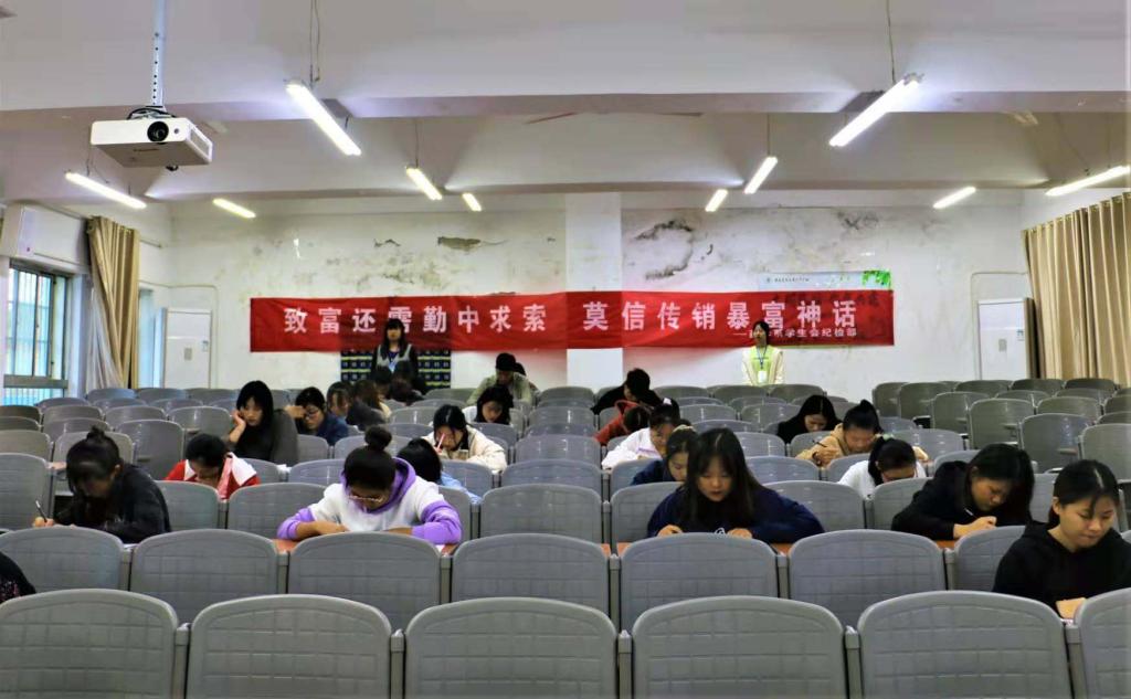 为了推进反传销宣传教育工作,提高师生对传销活动危害性的认识,增强大学生辨别传销诈骗手段的能力和反传销的意识,药学系于11月7日下午在阶梯一、三教室举办主题为“打击传销,和谐校园”的防传销知识竞赛。