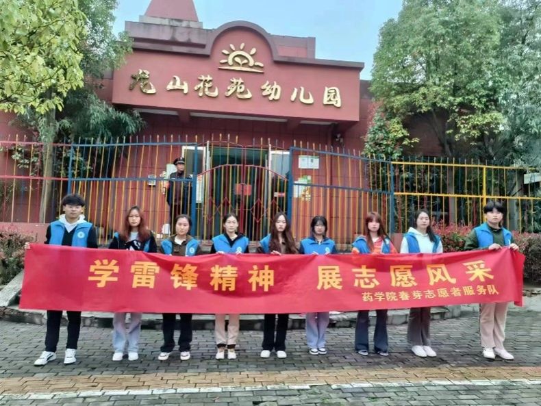 药学院志愿者协会组织十名志愿者前往龙山花苑幼儿园。通过图片、故事、视频等形式向小朋友们介绍雷锋叔叔的事迹,让孩子们知道雷锋叔叔是一位爱做好事、爱帮助别人的解放军叔叔, 引导小朋友从身边的小事情做起,做自己力所能及的好事。同时与孩子们一起歌唱《学习雷锋好榜样》,让小朋友们在歌曲中感知雷锋的伟大,更多的了解雷锋精神。