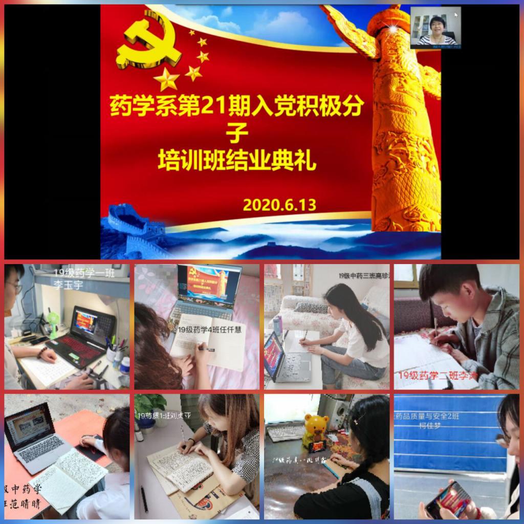 6月13日,安庆医药高等专科学校药学系党校第21期入党积极分子培训班结业典礼在线上举行。药学系党总支书记、学生党支部成员、各班级辅导员以及全体结业学员参加了本次结业典礼,会议由党总支副书记周兰主持。