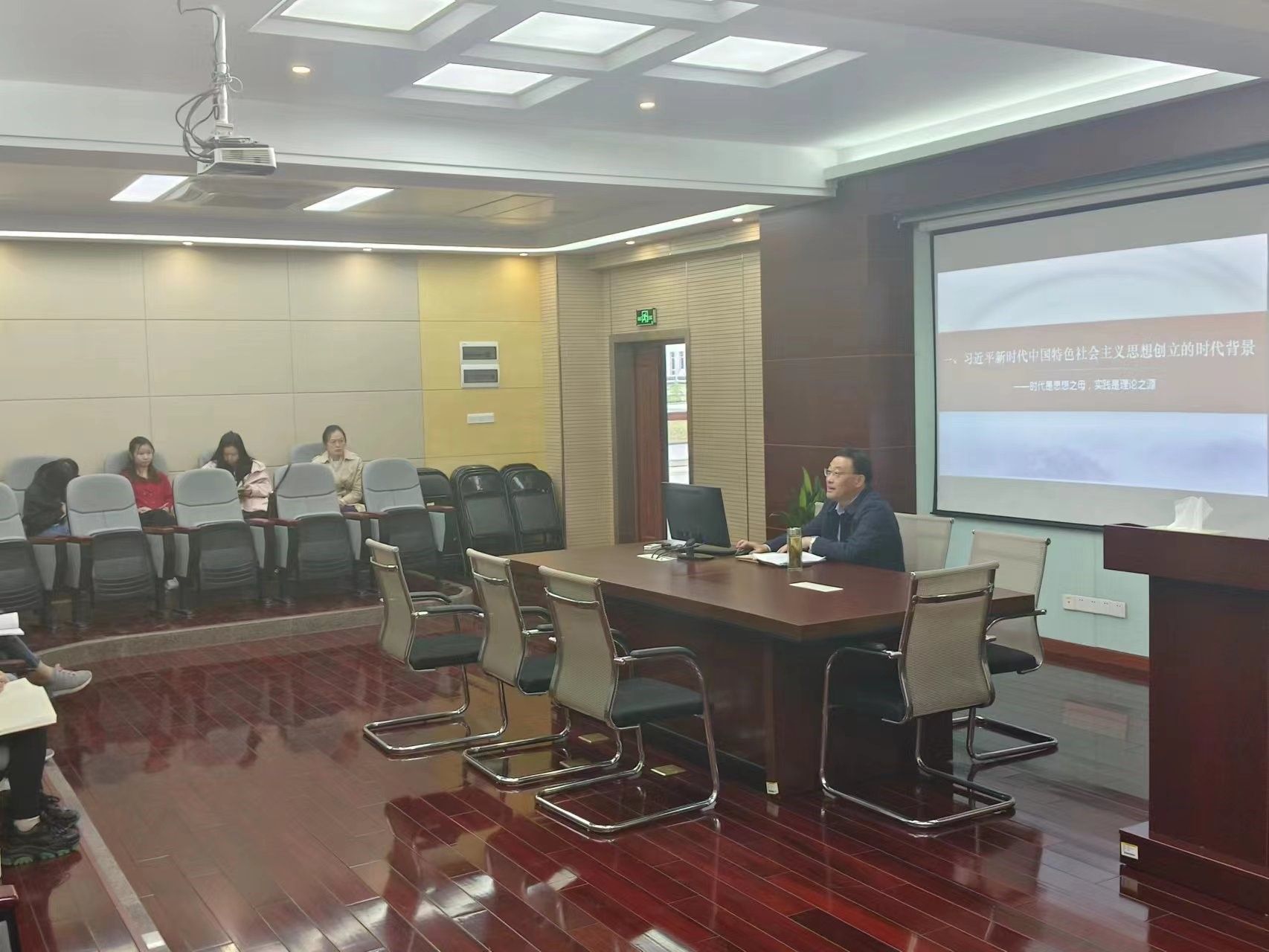 根据学校学习贯彻习近平新时代中国特色社会主义思想主题教育工作安排,为指导学院师生党员准确把握和深刻理解习近平新时代中国特色社会主义思想,切实用党的创新理论统一思想、指导实践、推动工作,11月8日,朱庆丰校长在药学院实训楼一楼会议室,以“学思践悟新思想,砥砺奋进新征程”为主题,为药学院全体师生党员上了一堂生动的党课。